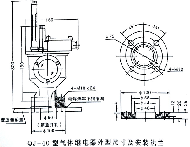 QJ-40型氣體繼電器是油浸式全密封變壓器的一種保護(hù)裝置。安裝在變壓器箱蓋上。